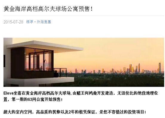 之前推出黃金海岸市中心33萬元澳幣公寓已全部售罄,反應非常熱烈,錯過了那此機會的朋友,這次不容再錯過了.第一期共63套公寓,今天隆重推出.有需要的朋友,請聯繫我們.