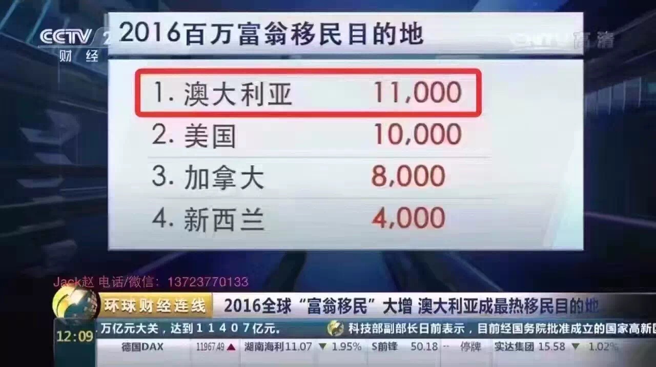 去年移民澳州的富翁人数达到了