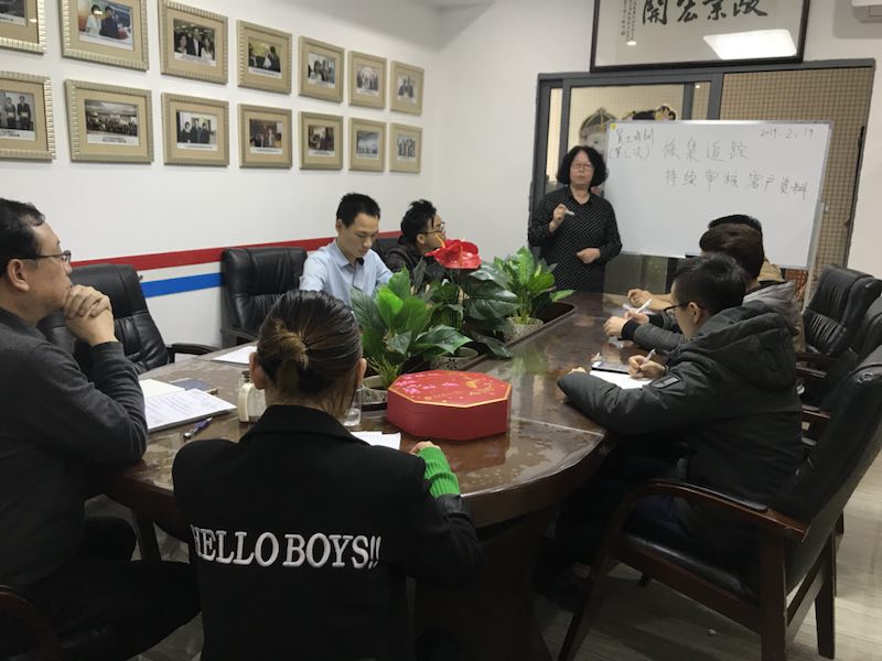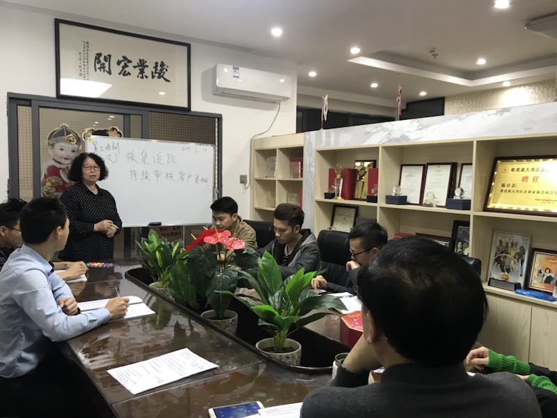 公司合规主任同前缐接單员工上培訓課,讲解<持续跟蹤客戶近况>,透过路透社系統进一步排查可疑人物。